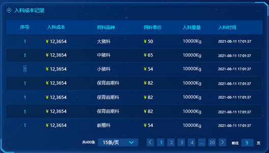 2、用电、用水、用料数据实时采集,精确核算养殖成本,成本可核算到每个养殖场、每个猪舍、每头猪;